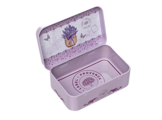 Caja Metálica Cesta de Lavanda y Mariposas Moradas para Jabón 125g