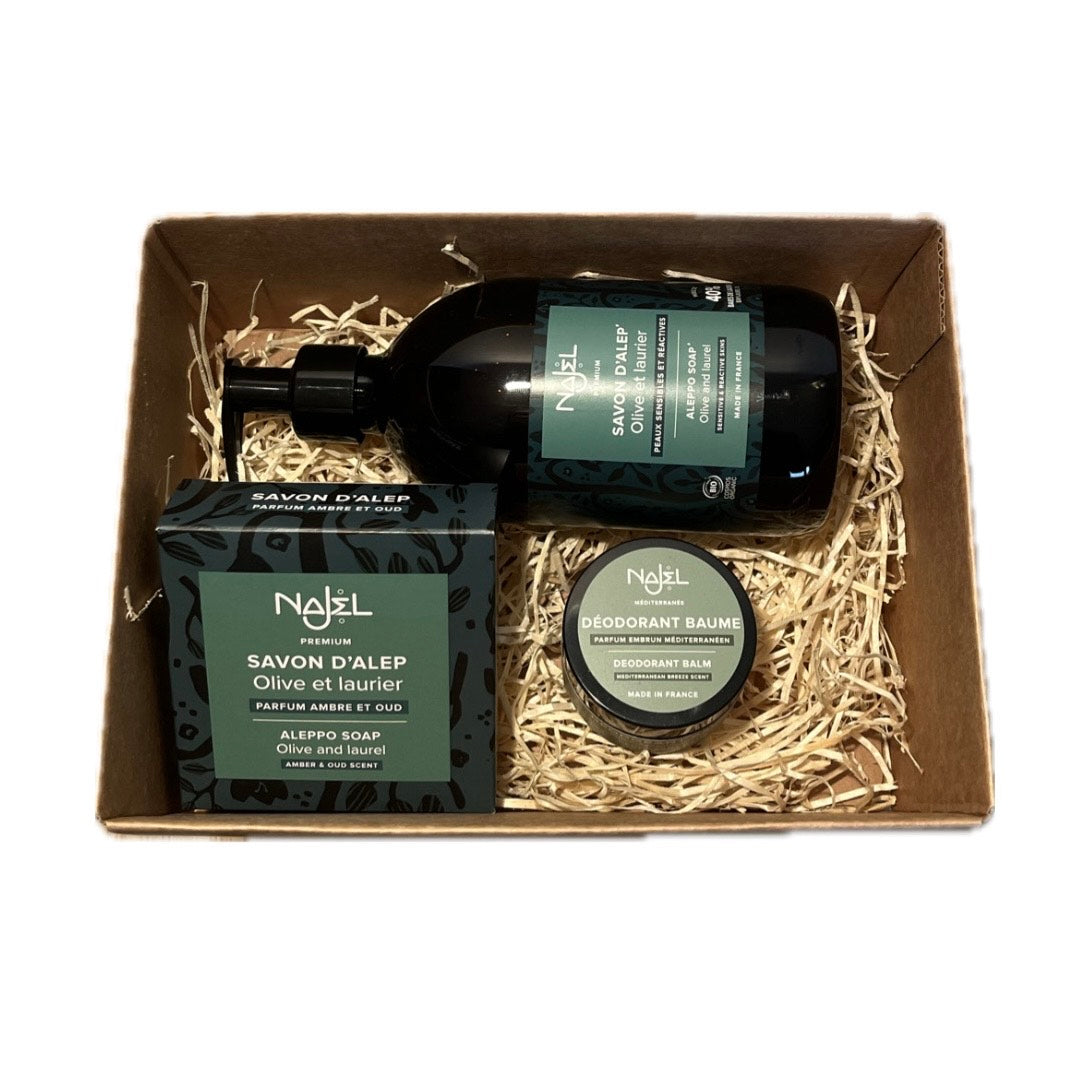 Un lote de higiene corporal inspirado en la tradición jabonera artesanal y en la frescura del Mediterráneo. Este pack combina la pureza del jabón de Alepo, en formato sólido y líquido, con un bálsamo desodorante natural que cuida la piel de forma eficaz y respetuosa.